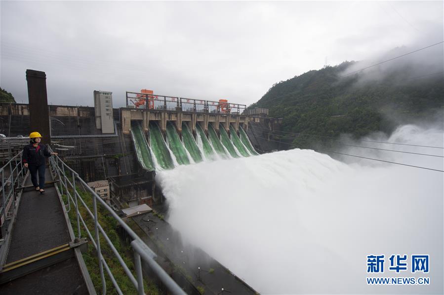 7月8日,新安江水庫開啟9孔泄洪,工作人員在新安江電廠開關(guān)站上進(jìn)行設(shè)備巡查。新華社記者翁忻旸攝