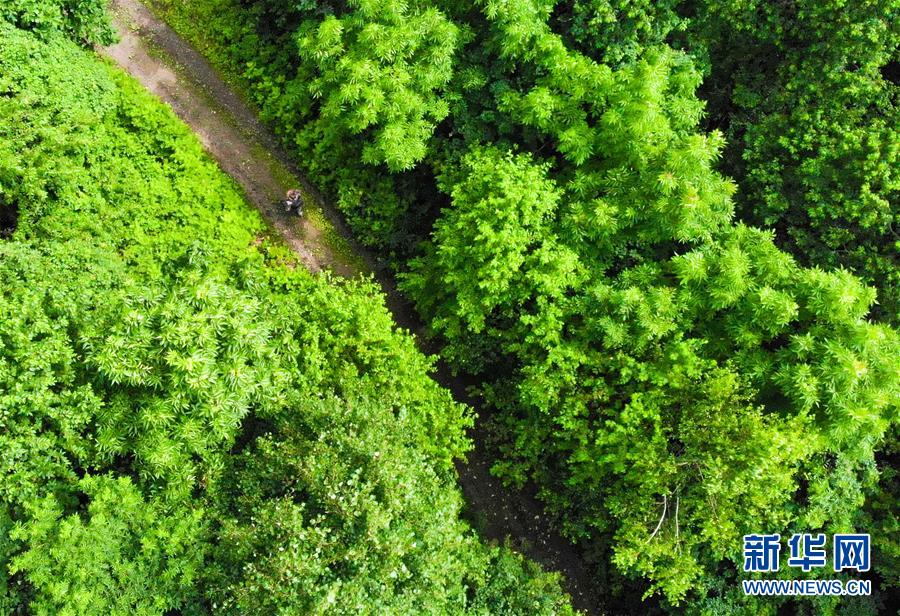7月8日,董紅雨在迎春林業(yè)局有限公司施業(yè)區(qū)內進行野生東北虎信息搜集和巡護工作(無人機照片)。新華社記者王松攝