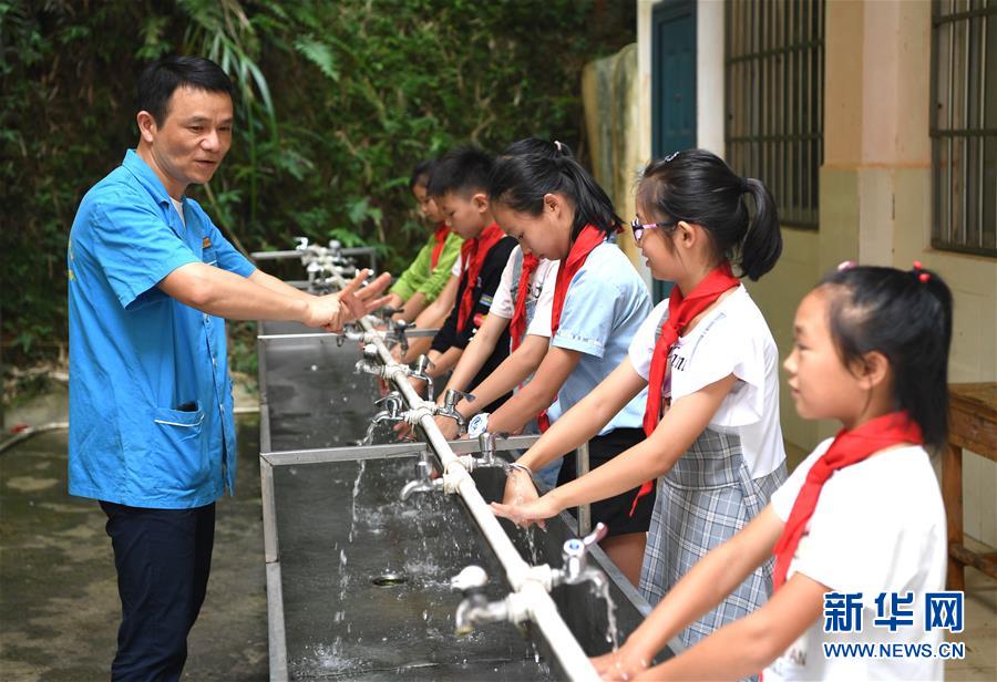 7月8日,陶雷為長垌小學的學生講解科學洗手的方法。新華社記者周華攝