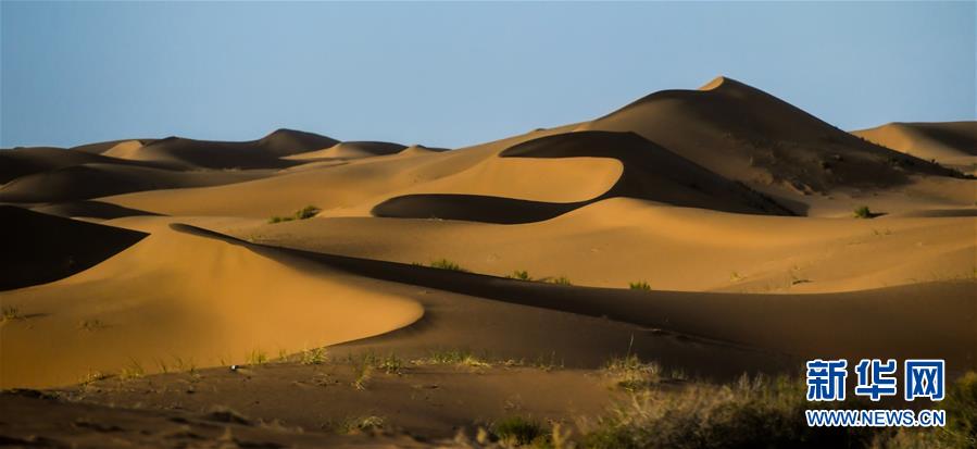 這是7月8日拍攝的騰格里沙漠風(fēng)光。位于內(nèi)蒙古自治區(qū)阿拉善左旗西南部和甘肅省中部邊境的騰格里沙漠是我國第四大沙漠,總面積約為4.3萬平方公里。夏日傍晚,騰格里沙漠連綿的沙丘被日光勾勒出美麗的線條,美不勝收。新華社記者連振攝