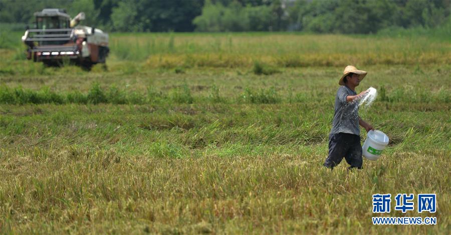 7月11日,村民在湖南省衡陽市衡陽縣臺源鎮(zhèn)臺九村收割后的稻田施肥,為種植晚稻做準(zhǔn)備。近日,湖南各地農(nóng)村陸續(xù)進(jìn)入“雙搶”季,農(nóng)民緊抓農(nóng)時,搶收搶種,力爭糧食穩(wěn)產(chǎn)豐收。新華社記者趙眾志攝