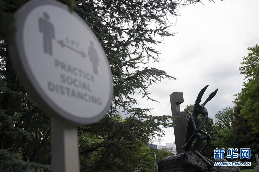 7月11日,在美國華盛頓的國家藝術(shù)畫廊雕塑公園,一座雕塑旁立著保持社交距離的提示牌。美國約翰斯·霍普金斯大學(xué)11日發(fā)布的新冠疫情最新統(tǒng)計數(shù)據(jù)顯示,截至美國東部時間11日18時34分(北京時間12日6時34分),美國累計確診病例3242073例。新華社記者劉杰攝