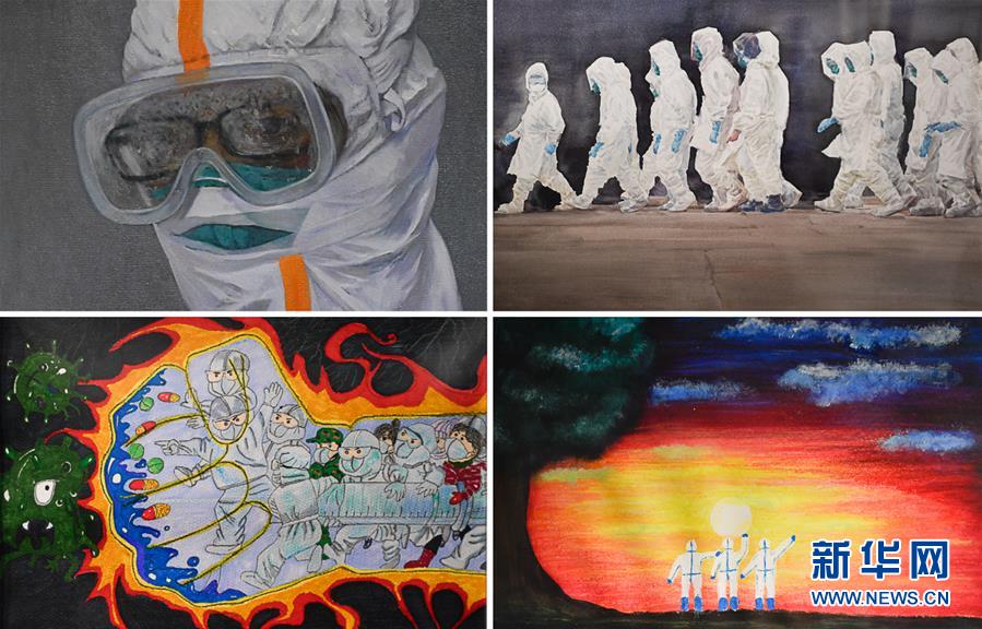 這是在吉林省抗疫主題美術(shù)·攝影作品展上展出的部分作品(拼版照片,7月11日攝)。近日,“大愛無疆——吉林省抗疫主題美術(shù)·攝影作品展”在吉林省工藝美術(shù)館與觀眾見面。展覽共展出抗擊新冠肺炎疫情主題書法、國畫、油畫、攝影等作品367件(組)。新華社記者 許暢 攝