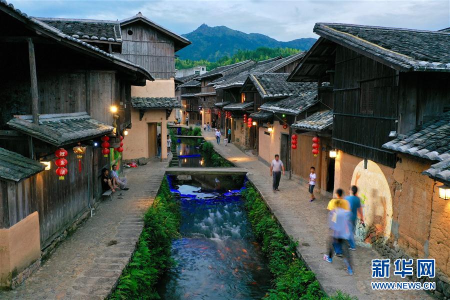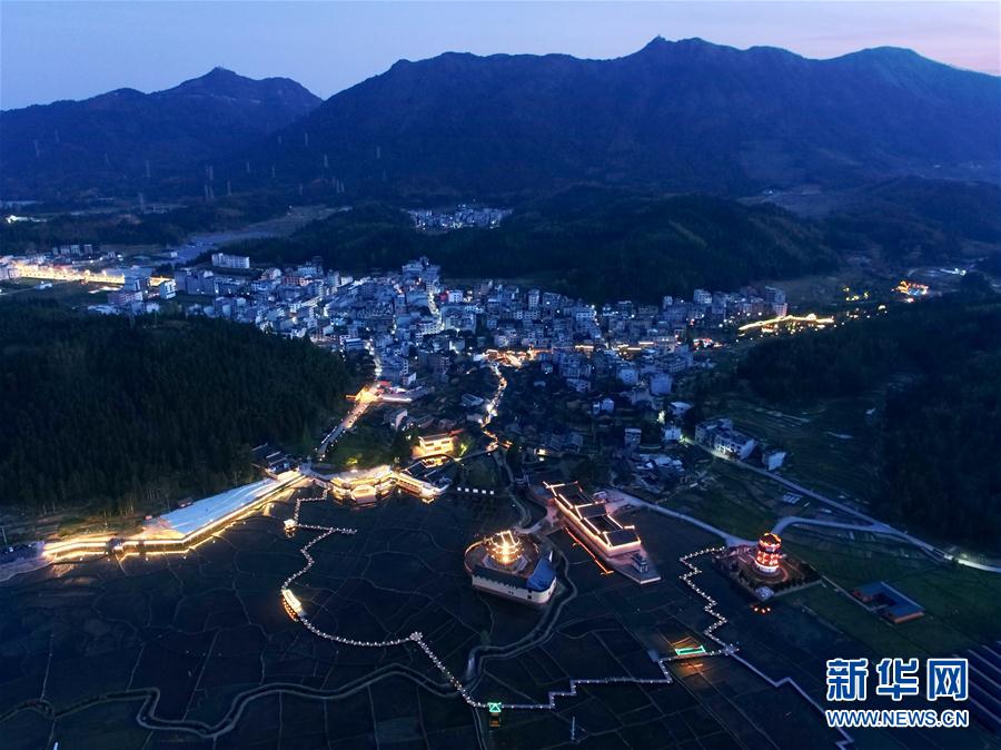 4月17日拍攝的福建省周寧縣浦源鎮(zhèn)浦源村夜色(無(wú)人機(jī)照片)。新華社記者 姜克紅 攝