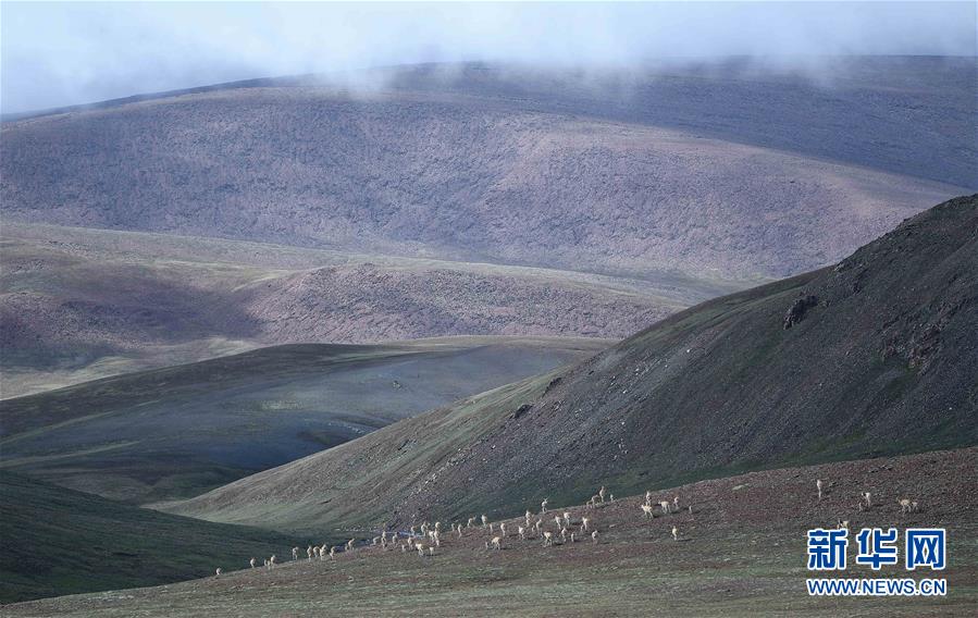 7月7日在可可西里卓乃湖區(qū)域拍攝的一群藏羚羊。目前正值藏羚羊產(chǎn)仔季。來(lái)自青海三江源、新疆阿爾金山、西藏羌塘等地的藏羚羊來(lái)到位于青海省可可西里腹地、被譽(yù)為“藏羚羊大產(chǎn)房”的卓乃湖區(qū)域產(chǎn)仔。新華社記者 薛玉斌 攝