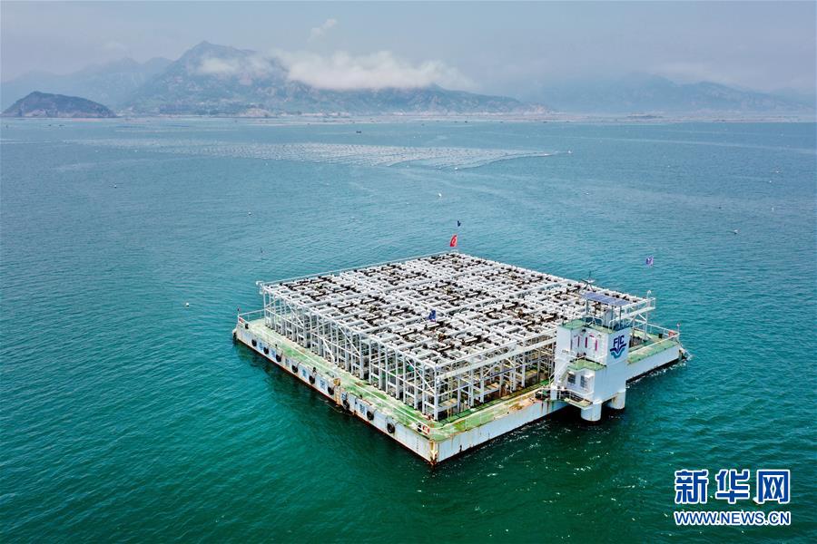 7月14日拍攝的位于福建省連江縣苔菉鎮(zhèn)海域的深遠海養(yǎng)殖平臺“福鮑一號”(無人機照片)。