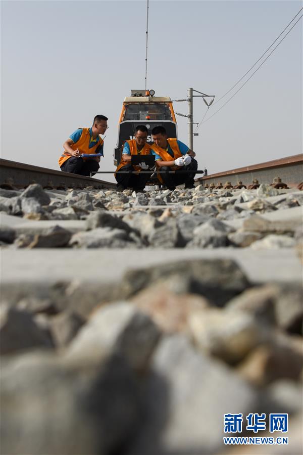 技術(shù)員進(jìn)行鋼軌廓形檢測(cè)(7月14日攝)。新華社記者 丁磊 攝