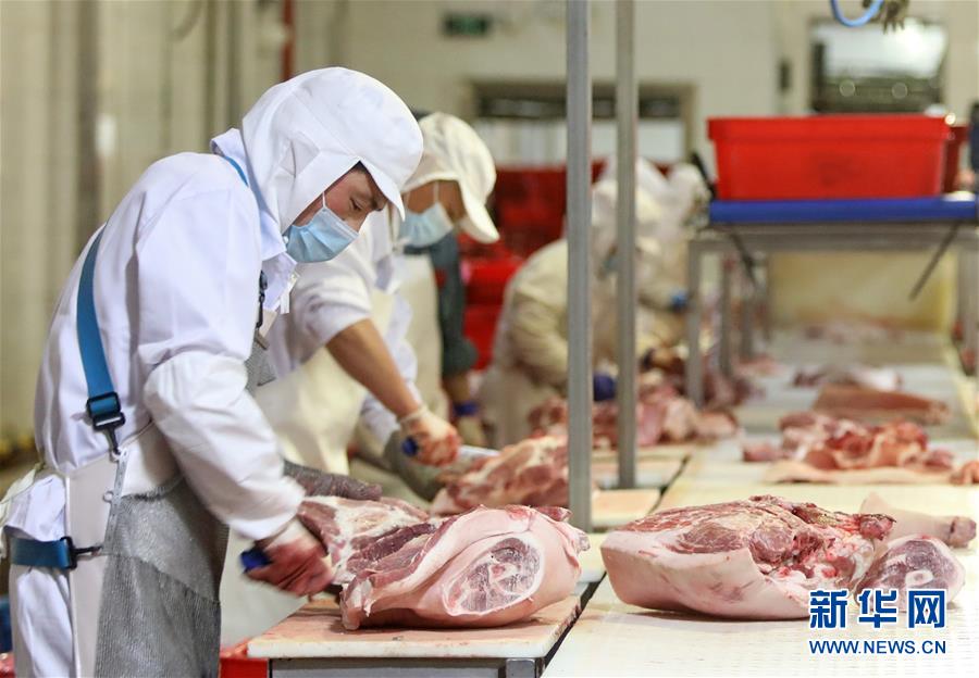 7月15日,北京二商肉類食品集團(tuán)有限公司員工在肉類分割流水線上工作。北京二商肉類食品集團(tuán)有限公司是保障北京肉類市場供應(yīng)的主要企業(yè)之一。新冠肺炎疫情以來,企業(yè)嚴(yán)格實施北京市、農(nóng)業(yè)農(nóng)村部和中國肉類協(xié)會的防疫要求,對進(jìn)入廠區(qū)的人員、車輛以及原料采購、屠宰分割、產(chǎn)品加工、貯藏運輸、廢棄物收集及污水處理等生產(chǎn)環(huán)節(jié)嚴(yán)格防疫,強(qiáng)調(diào)源頭把關(guān)徹底消毒。目前,集團(tuán)公司下屬多家生豬屠宰加工基地正常運營,保質(zhì)保量供應(yīng)北京市場需求。新華社記者 李欣 攝