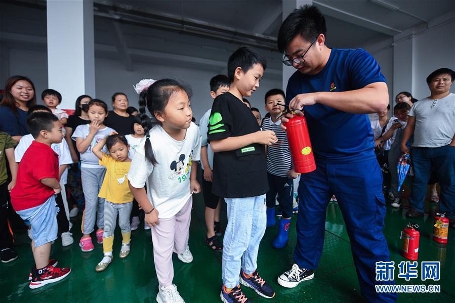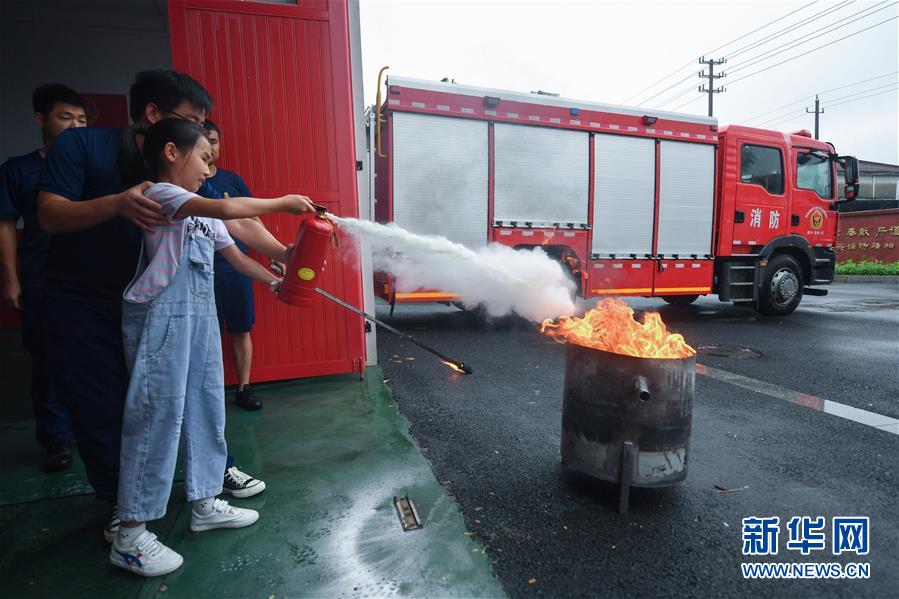 7月16日,東林鎮(zhèn)消防綜合應(yīng)急救援隊隊員在給學(xué)生們講解滅火器的使用方法。當(dāng)日,浙江省湖州市吳興區(qū)東林鎮(zhèn)舉辦暑期“安全防護小超人”主題活動。活動由醫(yī)護人員、消防隊員等為學(xué)生及家長講授日常安全避險及溺水急救知識,中小學(xué)們還在現(xiàn)場學(xué)習(xí)了簡易包扎、心肺復(fù)蘇的正確方式,并了解滅火器、滅火毯等消防器材的使用,為學(xué)生平安過暑期打好安全防護“預(yù)防針”。新華社記者 徐昱 攝