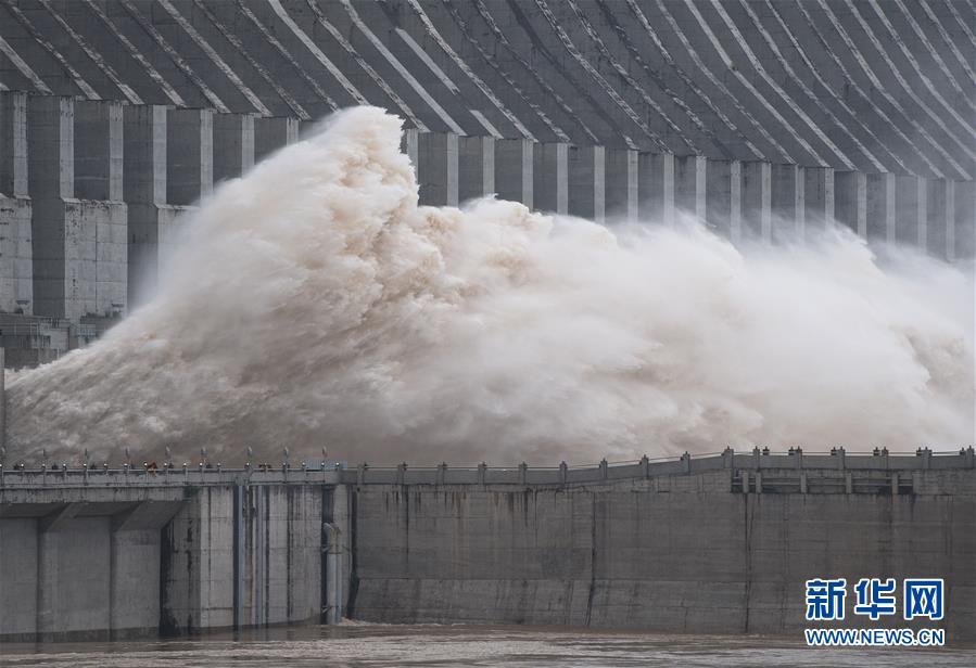 7月19日,三峽樞紐開(kāi)啟泄洪深孔泄洪。19日20時(shí),三峽水庫(kù)入庫(kù)流量4.6萬(wàn)立方米/秒,較本輪洪水的峰值6.1萬(wàn)立方米/秒下降了1.5萬(wàn)立方米/秒?!伴L(zhǎng)江2020年第2號(hào)洪水”平穩(wěn)通過(guò)三峽大壩。新華社記者肖藝九攝