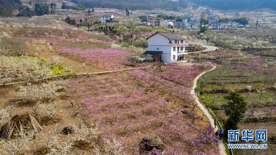 這是3月26日拍攝的四川省漢源縣雙溪鄉(xiāng)申溝村萬(wàn)畝桃園一角(無(wú)人機(jī)照片)。新華社記者王曦?cái)z