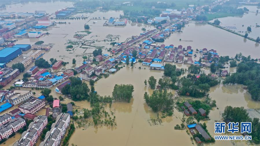 這是7月20日拍攝的六安市裕安區(qū)固鎮(zhèn)鎮(zhèn)被淹的街道(無人機照片)。近日,安徽省六安市裕安區(qū)固鎮(zhèn)鎮(zhèn)遭受嚴重洪澇災害,多個村莊被淹,道路中斷。目前,多支救援力量在現(xiàn)場轉移受災群眾。新華社記者湯陽攝