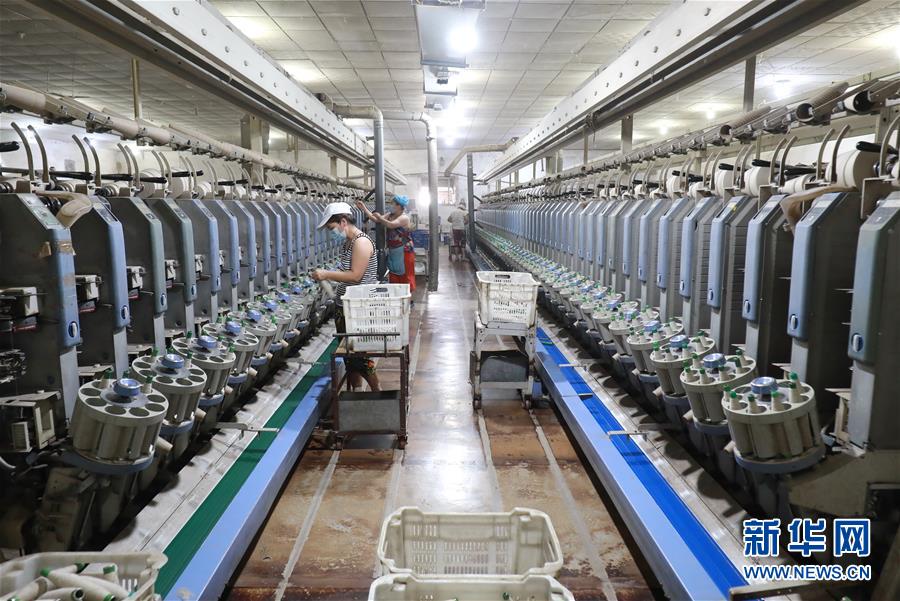 7月20日,工人在灤南縣長(zhǎng)凝鎮(zhèn)的一家紡織廠生產(chǎn)車間里工作。近年來(lái),河北省灤南縣大力發(fā)展村邊民營(yíng)企業(yè),引導(dǎo)企業(yè)在鄉(xiāng)鎮(zhèn)村邊建廠,帶動(dòng)當(dāng)?shù)?萬(wàn)多名農(nóng)村群眾在村邊就近就業(yè),實(shí)現(xiàn)穩(wěn)步增收。新華社記者楊世堯攝