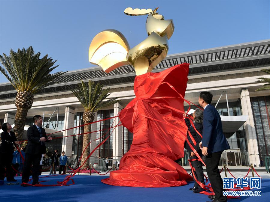 2019年11月19日,嘉賓為第28屆金雞百花電影節(jié)金雞雕塑揭幕。當(dāng)日,第28屆金雞百花電影節(jié)金雞雕塑揭幕儀式在廈門海峽大劇院前廣場(chǎng)舉行。新華社記者姜克紅攝