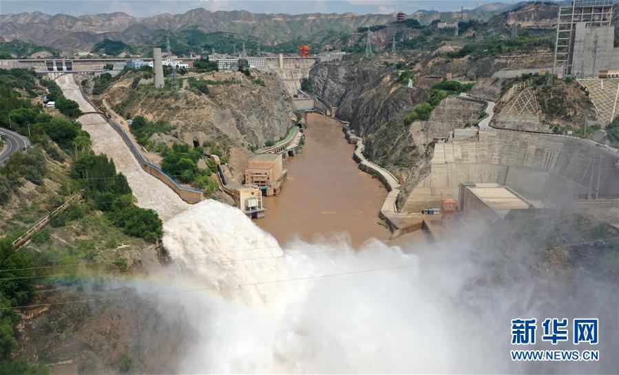 7月21日,劉家峽水庫正在泄洪(無人機(jī)照片)。新華社記者陳斌攝