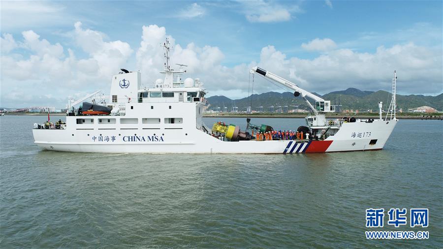 “海巡173輪”在試航(資料圖片,無人機(jī)照片)。“海巡173輪”7月22日正式列編交通運(yùn)輸部南海航海保障中心廣州航標(biāo)處。這艘排水量2228噸的大型航標(biāo)工作船是中國交通運(yùn)輸系統(tǒng)南海海區(qū)裝備最先進(jìn)的船,將用于粵港澳大灣區(qū)和南海海區(qū)水上浮標(biāo)的布設(shè)和維護(hù)。新華社發(fā)