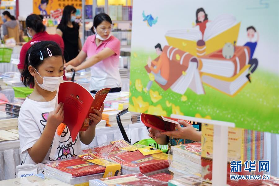 7月23日,一名小讀者在書(shū)展上閱讀。當(dāng)日,第十屆江蘇書(shū)展在江蘇蘇州開(kāi)幕,400多家出版發(fā)行單位參展,吸引眾多讀者選購(gòu)圖書(shū)。新華社記者李博攝