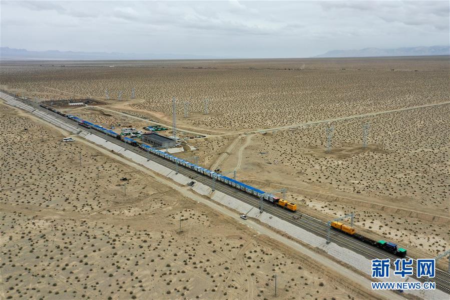 靜駐在戈壁上,它是鐵路工人流動的家(7月19日攝,無人機照片)。新華社記者 丁磊 攝