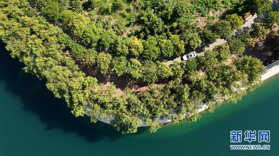 7月26日,汽車行駛在欒卸村的樹(shù)林里(無(wú)人機(jī)照片)。盛夏,位于太行山區(qū)的河北省沙河市欒卸村滿目蔥蘢,山水、田園、民居構(gòu)成一幅美麗鄉(xiāng)村圖景。新華社記者 牟宇 攝