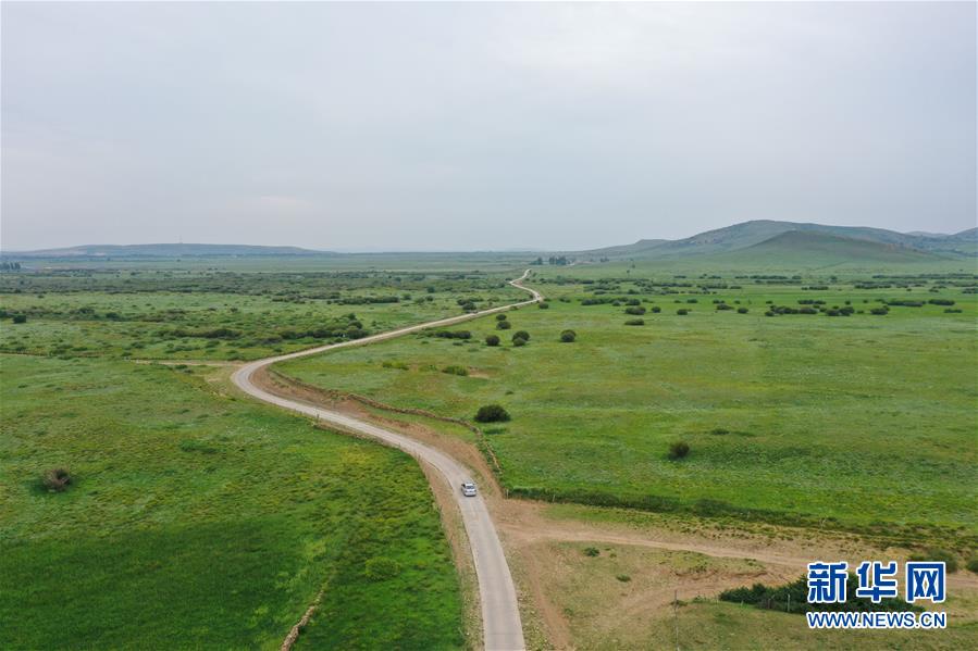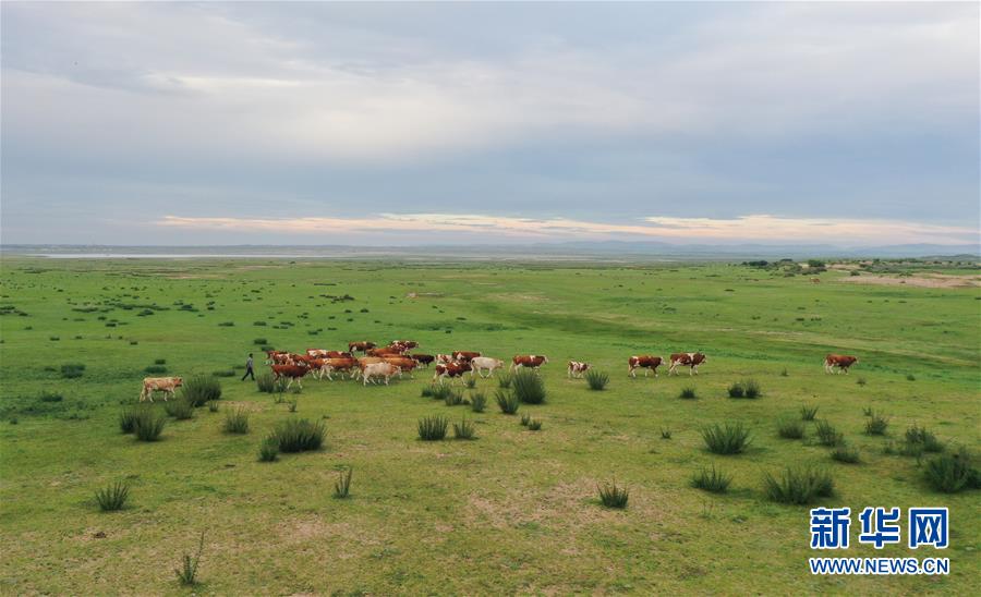 呼格吉勒在正藍(lán)旗恩克寶力格嘎查的牧場上放牛(7月25日攝,無人機(jī)照片)。新華社記者徐欽攝