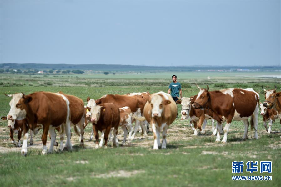 呼格吉勒在牧場放牛(7月23日攝)。新華社記者劉磊攝