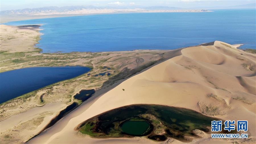 這是青海湖沙島一角(7月28日攝,無(wú)人機(jī)照片)。盛夏傍晚,位于青海湖東北部的沙島,島內(nèi)湖泊星羅棋布,沙丘連綿起伏,風(fēng)景別致。金沙與湖水掩映,在陽(yáng)光的勾勒下形成一幅美麗的畫(huà)卷。新華社記者張宏祥攝
