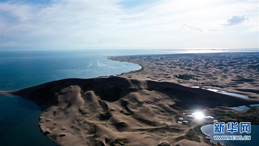 這是7月28日拍攝的青海湖沙島一隅(無(wú)人機(jī)照片)。盛夏傍晚,位于青海湖東北部的沙島,島內(nèi)湖泊星羅棋布,沙丘連綿起伏,風(fēng)景別致。金沙與湖水掩映,在陽(yáng)光的勾勒下形成一幅美麗的畫(huà)卷。新華社記者吳剛攝