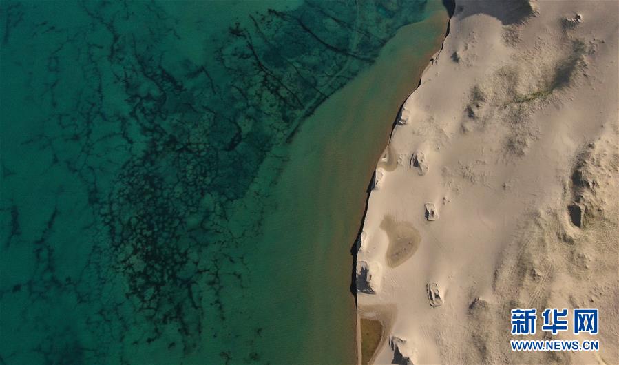 這是青海湖沙島風(fēng)光(7月28日攝,無人機照片)。盛夏傍晚,位于青海湖東北部的沙島,島內(nèi)湖泊星羅棋布,沙丘連綿起伏,風(fēng)景別致。金沙與湖水掩映,在陽光的勾勒下形成一幅美麗的畫卷。新華社記者張宏祥攝