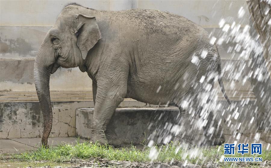 北京動(dòng)物園的大象在降溫噴淋設(shè)施旁(7月30日攝)。炎炎夏日,北京動(dòng)物園根據(jù)動(dòng)物生活習(xí)性,為動(dòng)物配備了自動(dòng)噴淋噴霧、空調(diào)籠舍、恒溫水池、遮陽(yáng)棚等各類避暑設(shè)施,同時(shí)還準(zhǔn)備了西瓜等降溫食品,保障動(dòng)物平安舒適地度過(guò)伏天。新華社記者李欣攝