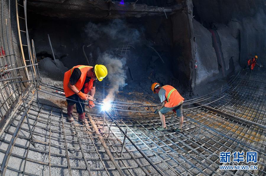 7月30日,中鐵四局施工人員在潮州東聯(lián)絡(luò)線馬頭山隧道進(jìn)行仰拱鋼筋焊接。新華社記者劉大偉攝