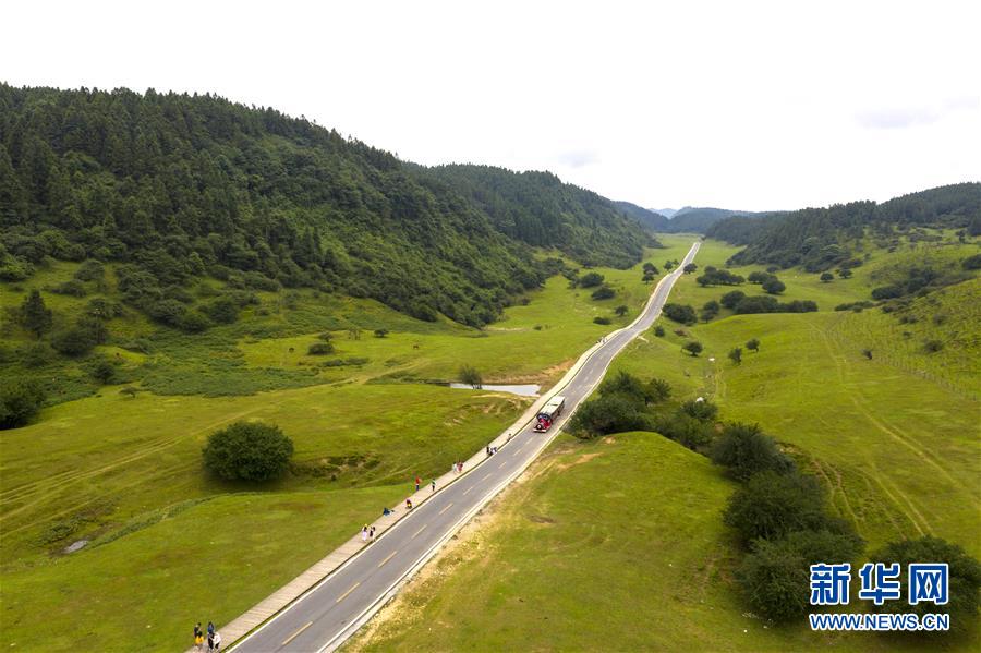 7月30日,游客在仙女山國家森林公園高山草場游玩。新華社記者劉潺攝