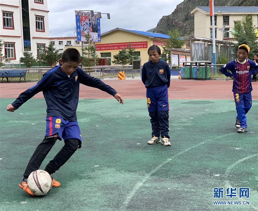 拉孜鄉(xiāng)中心小學足球興趣小組的學生在進行足球訓練(7月29日攝)。新華社記者洛卓嘉措攝