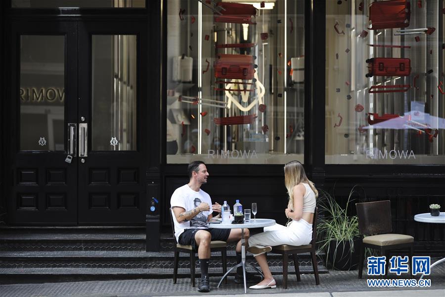 7月30日,在美國紐約蘇豪商業(yè)區(qū),人們在一家餐廳的戶外就餐區(qū)用餐。美國商務(wù)部30日公布的首次預(yù)估數(shù)據(jù)顯示,受新冠疫情導(dǎo)致經(jīng)濟大面積“停擺”和消費停滯拖累,今年第二季度美國實際國內(nèi)生產(chǎn)總值(GDP)按年率計算下滑32.9%,創(chuàng)1947年有記錄以來最大降幅。新華社記者王迎攝