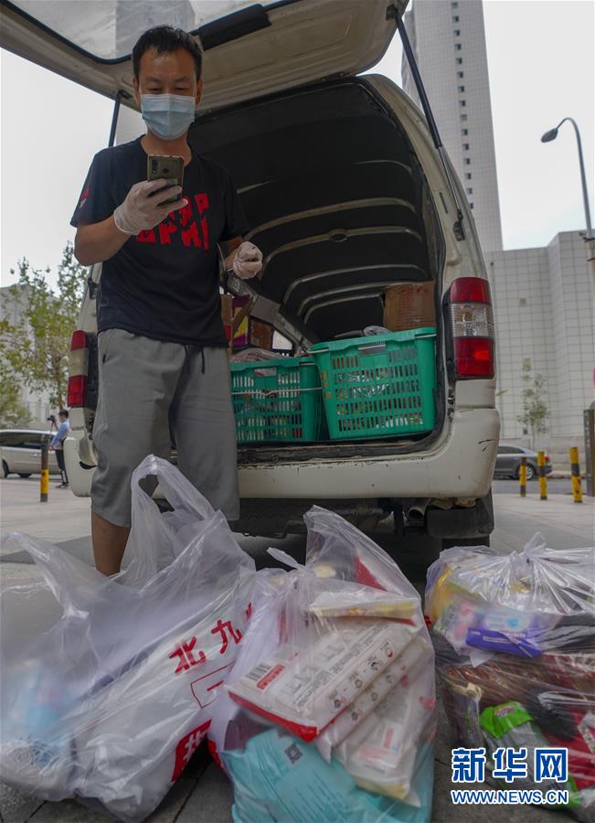 7月30日,在烏魯木齊經(jīng)濟技術(shù)開發(fā)區(qū)(頭屯河區(qū))萬達華府小區(qū),商販打電話告知住戶訂購的商品已經(jīng)送達。新華社記者趙戈攝