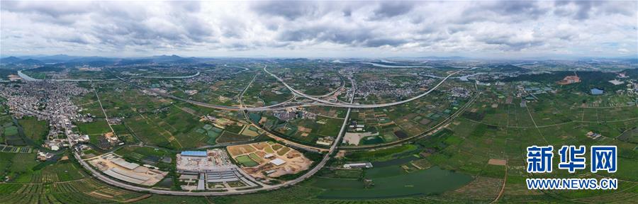 這是已經(jīng)建設(shè)完成的潮汕環(huán)線高速公路上北互通立交,沈海高速公路從該互通立交下面穿過(無(wú)人機(jī)照片,7月31日攝)。新華社記者劉大偉攝