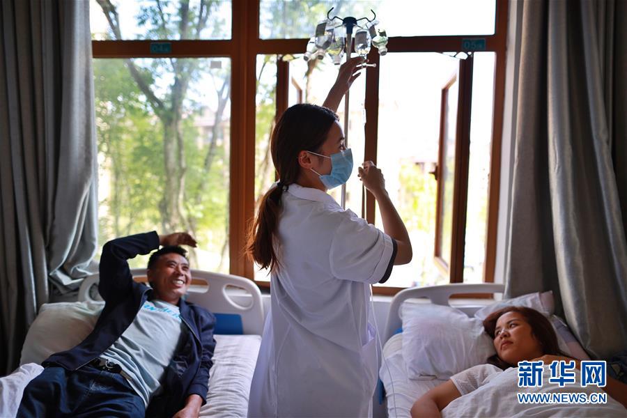 搬遷群眾在柏楊林易地扶貧搬遷安置點衛(wèi)生院內(nèi)治療(8月3日攝)。貴州省畢節(jié)市七星關區(qū)柏楊林易地扶貧搬遷安置點是畢節(jié)市最大的易地扶貧搬遷安置點,總面積約1.1平方公里,從2017年開始至今,共有34個鄉(xiāng)鎮(zhèn)6372戶29001人安置到位。如今,安置點內(nèi)教育、醫(yī)療、就業(yè)扶貧車間、長幼日間托養(yǎng)照料中心等設施齊全,搬遷群眾在這里過上了安居樂業(yè)的幸福生活。新華社記者劉續(xù)攝