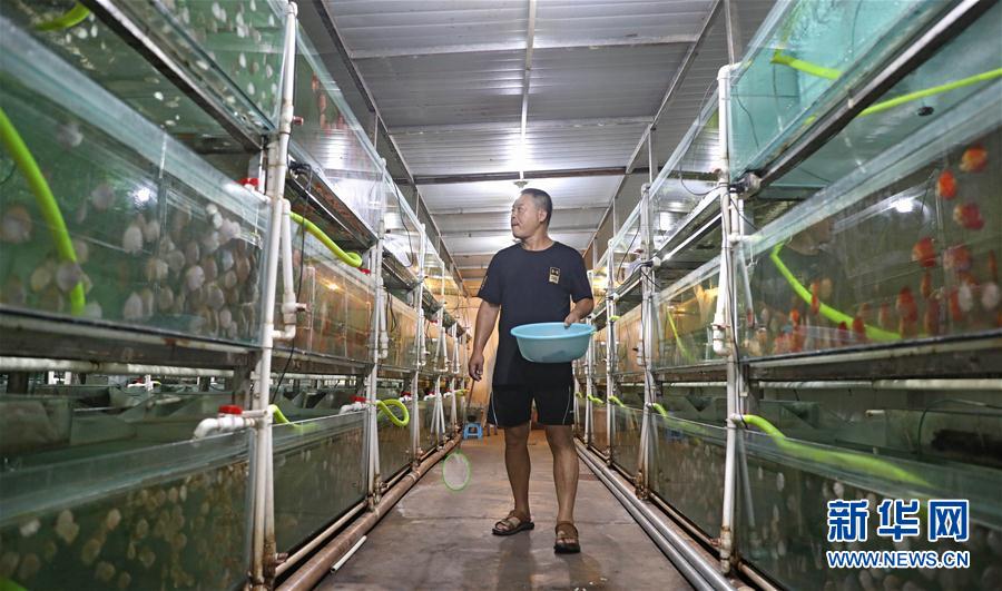 近年來,在遼寧省鞍山市寧遠街道張忠堡村,許多村民投身觀賞魚養(yǎng)殖業(yè),當(dāng)?shù)夭扇 皡f(xié)會+合作社+農(nóng)戶”模式,利用鞍山三臺子觀賞魚交易中心平臺,將養(yǎng)殖的觀賞魚銷往東北三省以及河北、內(nèi)蒙古、天津等地。小小觀賞魚,如今已成為村民重要的致富手段。新華社記者姚劍鋒攝