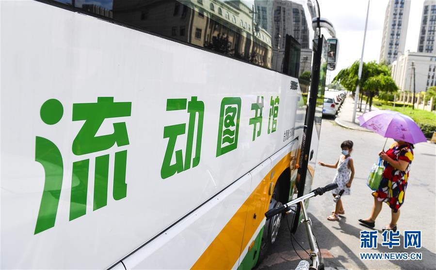 8月5日,在長(zhǎng)春市一處社區(qū)服務(wù)點(diǎn),市民進(jìn)入“流動(dòng)圖書(shū)館”借閱圖書(shū)。三千冊(cè)圖書(shū),一輛大巴車(chē),穿梭在城市的街頭巷尾。在吉林長(zhǎng)春,長(zhǎng)春市圖書(shū)館利用流動(dòng)圖書(shū)車(chē),定期在市內(nèi)15個(gè)固定服務(wù)點(diǎn)間巡回流動(dòng),為市民提供便捷的圖書(shū)借閱服務(wù)。新華社記者許暢攝