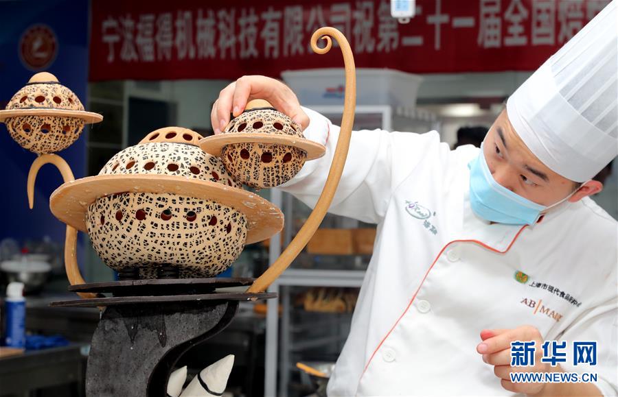 8月5日,糖藝比賽參賽選手在創(chuàng)作中。當(dāng)日,第二十一屆全國(guó)焙烤職業(yè)技能競(jìng)賽上海賽區(qū)選拔賽,在上海市現(xiàn)代食品職業(yè)技能培訓(xùn)中心舉行,來自上海、江蘇、浙江等地的近60名焙烤行業(yè)技師,在藝術(shù)面包、傳統(tǒng)糕點(diǎn)、糖藝和藝術(shù)巧克力等項(xiàng)目中進(jìn)行比拼,在充滿焙烤香氣的賽場(chǎng)上展現(xiàn)技藝。新華社記者方喆攝