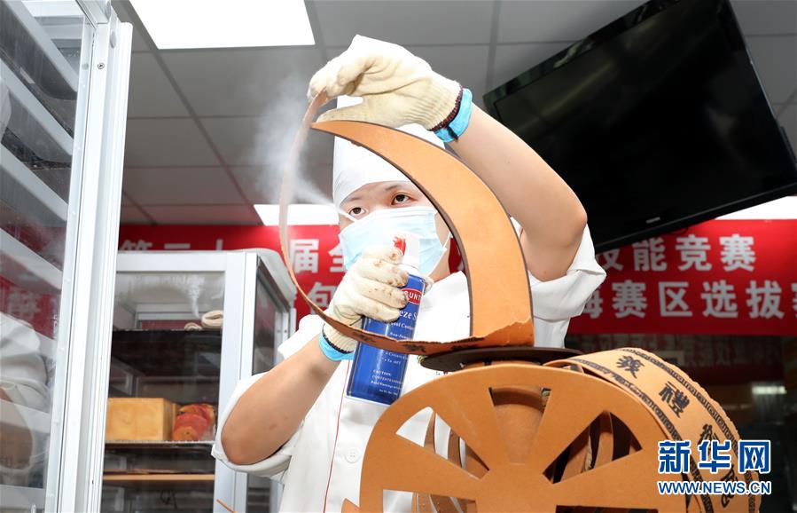 8月5日,參賽選手在為藝術(shù)面包定型。當(dāng)日,第二十一屆全國(guó)焙烤職業(yè)技能競(jìng)賽上海賽區(qū)選拔賽,在上海市現(xiàn)代食品職業(yè)技能培訓(xùn)中心舉行,來自上海、江蘇、浙江等地的近60名焙烤行業(yè)技師,在藝術(shù)面包、傳統(tǒng)糕點(diǎn)、糖藝和藝術(shù)巧克力等項(xiàng)目中進(jìn)行比拼,在充滿焙烤香氣的賽場(chǎng)上展現(xiàn)技藝。新華社記者方喆攝