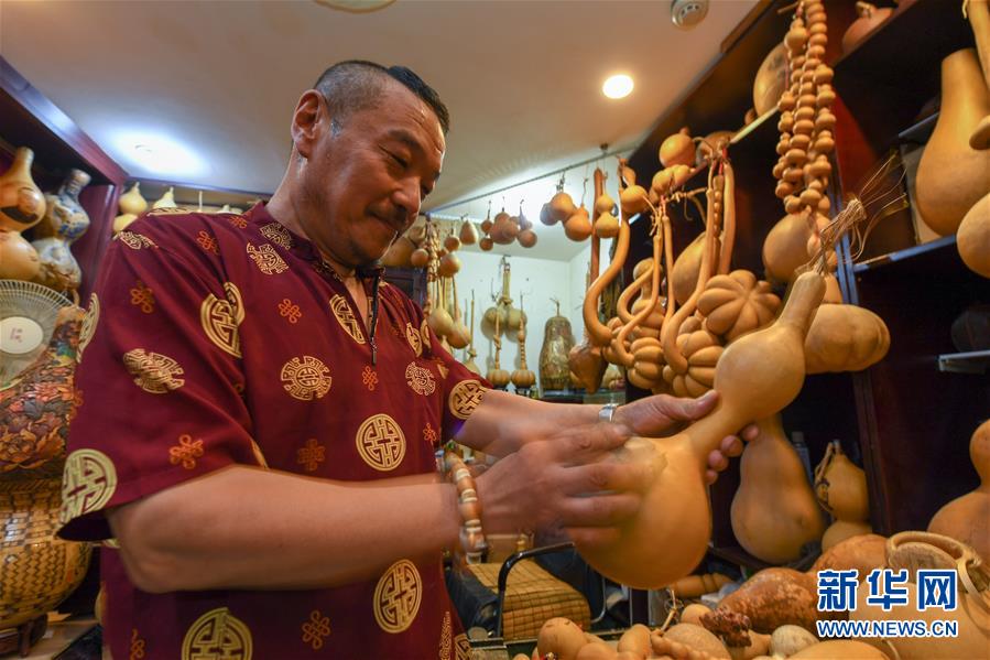 8月5日,侯景偉挑選適合創(chuàng)作的葫蘆。今年55歲的吉林四平人侯景偉自幼與家人學(xué)習(xí)雕刻、烙畫藝術(shù)。經(jīng)過(guò)多年潛心研究,他將浮雕和烙畫工藝相結(jié)合,通過(guò)拋光、起稿、雕刻、烙燙、套色等十余道工藝,制作展現(xiàn)傳統(tǒng)文化、民俗故事的葫蘆工藝品。2020年,侯景偉被評(píng)為四平市非物質(zhì)文化遺產(chǎn)項(xiàng)目侯氏葫蘆雕刻烙畫代表性傳承人。他說(shuō):“希望有更多人加入到非遺傳承隊(duì)伍中,讓小葫蘆‘講’出更多民俗故事。”新華社記者張楠攝