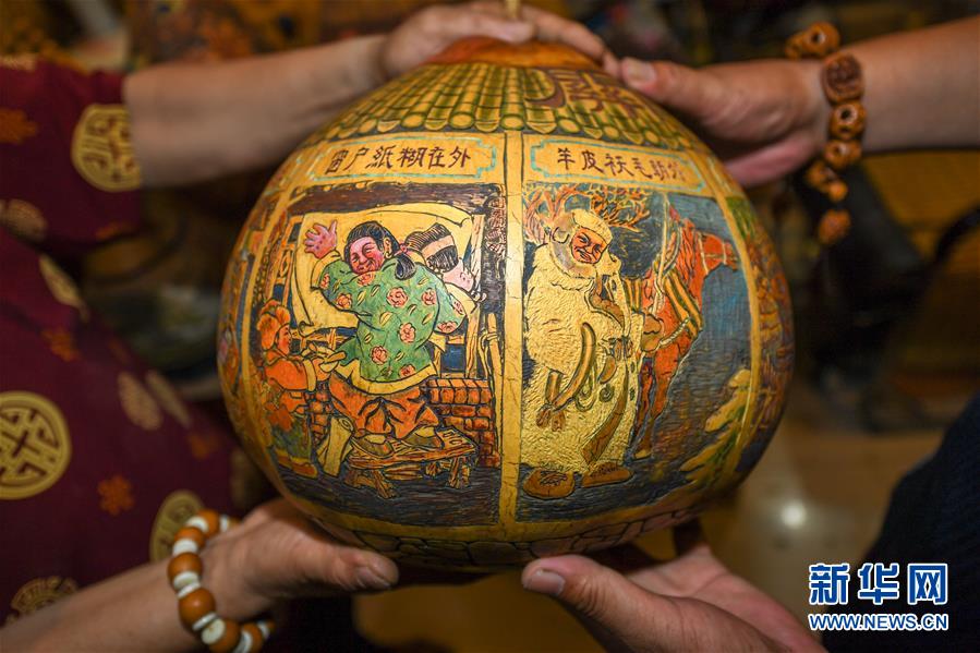 這是侯景偉創(chuàng)作的民俗主題葫蘆工藝品(8月5日攝)。今年55歲的吉林四平人侯景偉自幼與家人學(xué)習(xí)雕刻、烙畫藝術(shù)。經(jīng)過(guò)多年潛心研究,他將浮雕和烙畫工藝相結(jié)合,通過(guò)拋光、起稿、雕刻、烙燙、套色等十余道工藝,制作展現(xiàn)傳統(tǒng)文化、民俗故事的葫蘆工藝品。2020年,侯景偉被評(píng)為四平市非物質(zhì)文化遺產(chǎn)項(xiàng)目侯氏葫蘆雕刻烙畫代表性傳承人。他說(shuō):“希望有更多人加入到非遺傳承隊(duì)伍中,讓小葫蘆‘講’出更多民俗故事?!毙氯A社記者張楠攝