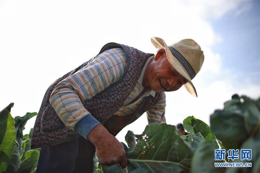 8月6日,村民在威寧縣草海鎮(zhèn)中海社區(qū)蔬菜基地種植西蘭花。新華社記者劉續(xù)攝