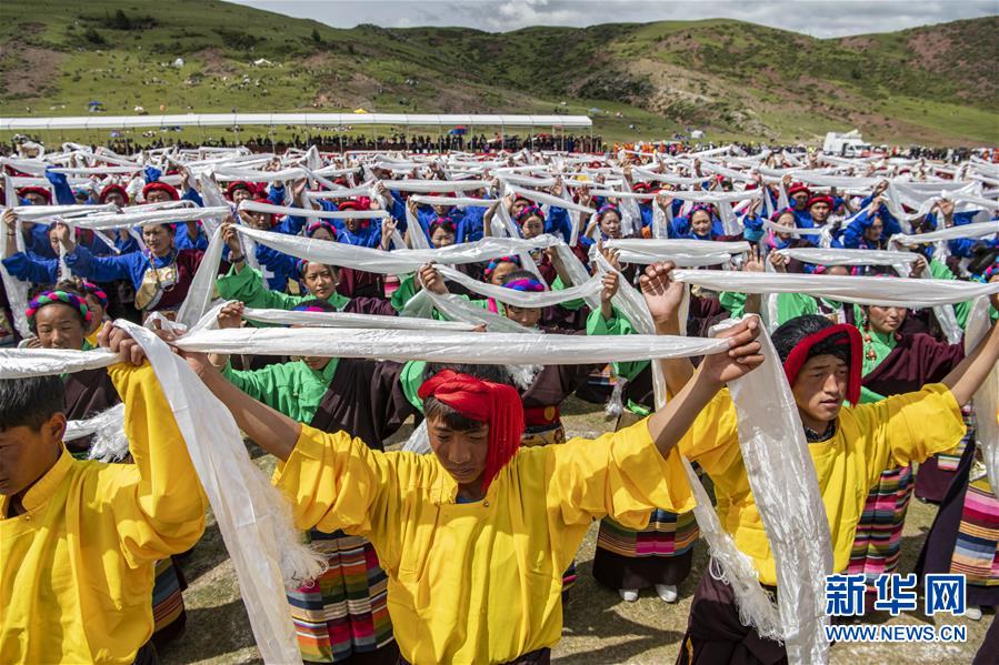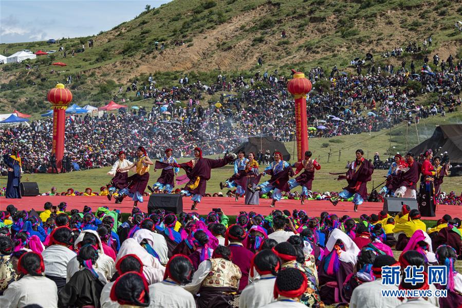 8月7日,在西藏首屆弦子舞展演現(xiàn)場(chǎng),演出人員在表演弦子舞。當(dāng)日,西藏首屆弦子舞展演在昌都市芒康縣舉行。眾多演員同臺(tái)獻(xiàn)藝,表演國(guó)家級(jí)非物質(zhì)文化遺產(chǎn)弦子舞,吸引西藏各地的群眾前來(lái)觀(guān)看。新華社記者孫非攝
