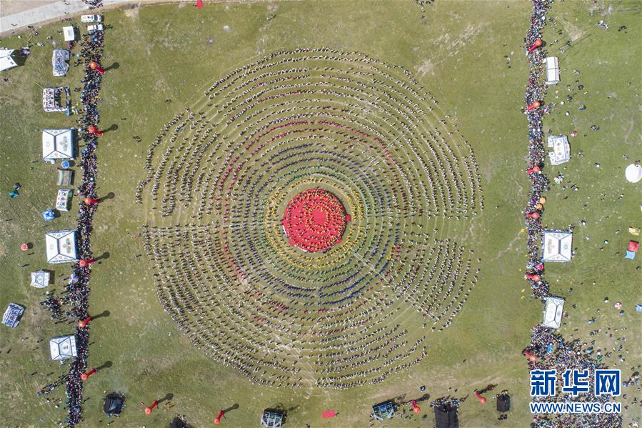 西藏首屆弦子舞展演現(xiàn)場(chǎng)(8月7日攝,無(wú)人機(jī)照片)。當(dāng)日,西藏首屆弦子舞展演在昌都市芒康縣舉行。眾多演員同臺(tái)獻(xiàn)藝,表演國(guó)家級(jí)非物質(zhì)文化遺產(chǎn)弦子舞,吸引西藏各地的群眾前來(lái)觀(guān)看。新華社記者孫非攝