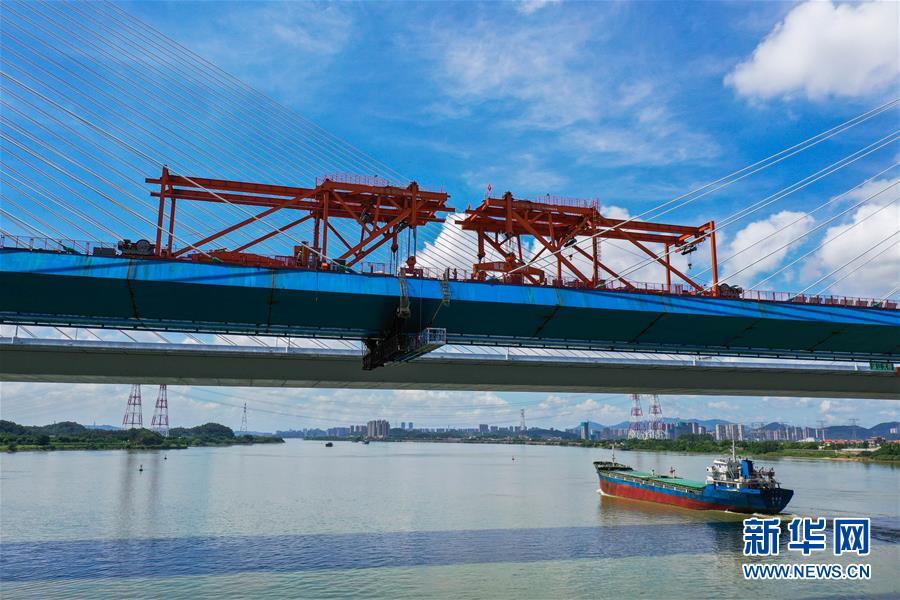 廣州南沙港鐵路跨西江特大斜拉橋完成最后一塊鋼箱梁吊裝