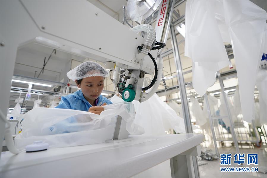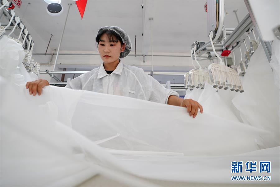 8月9日,甘肅拓奇扶貧車間的員工在服裝加工生產(chǎn)線上作業(yè)。甘肅拓奇扶貧車間位于甘肅省臨夏回族自治州積石山縣,是依托東西部扶貧協(xié)作平臺引進的服裝加工企業(yè)。扶貧車間建成投產(chǎn)以來帶動就業(yè)近300人,其中吸納建檔立卡貧困戶就業(yè)110人,實現(xiàn)了貧困群眾就地就近就業(yè)增收的目的,為助推當?shù)孛撠毠约翱h域經(jīng)濟發(fā)展發(fā)揮了重要作用。新華社記者陳斌攝。