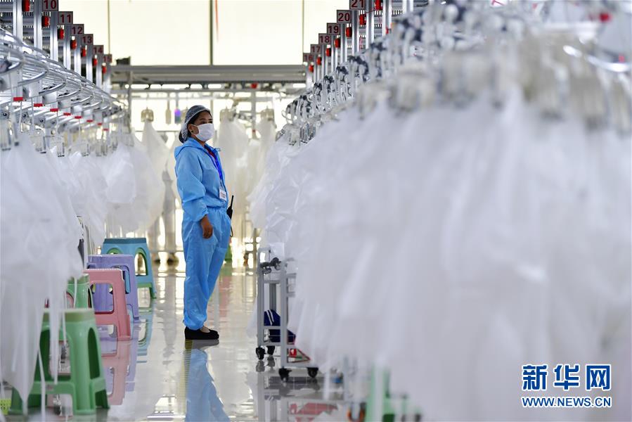 8月9日,甘肅拓奇扶貧車間的員工在服裝加工生產線上作業(yè)。甘肅拓奇扶貧車間位于甘肅省臨夏回族自治州積石山縣,是依托東西部扶貧協(xié)作平臺引進的服裝加工企業(yè)。扶貧車間建成投產以來帶動就業(yè)近300人,其中吸納建檔立卡貧困戶就業(yè)110人,實現(xiàn)了貧困群眾就地就近就業(yè)增收的目的,為助推當?shù)孛撠毠约翱h域經濟發(fā)展發(fā)揮了重要作用。新華社記者陳斌攝。