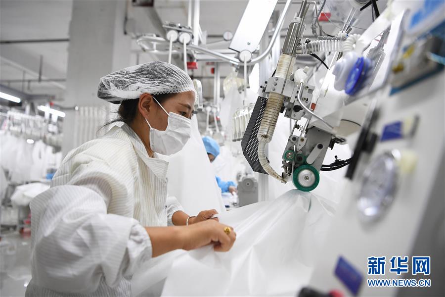 8月9日,甘肅拓奇扶貧車間的員工在服裝加工生產(chǎn)線上作業(yè)。甘肅拓奇扶貧車間位于甘肅省臨夏回族自治州積石山縣,是依托東西部扶貧協(xié)作平臺引進(jìn)的服裝加工企業(yè)。扶貧車間建成投產(chǎn)以來帶動就業(yè)近300人,其中吸納建檔立卡貧困戶就業(yè)110人,實(shí)現(xiàn)了貧困群眾就地就近就業(yè)增收的目的,為助推當(dāng)?shù)孛撠毠?jiān)及縣域經(jīng)濟(jì)發(fā)展發(fā)揮了重要作用。新華社記者陳斌攝。