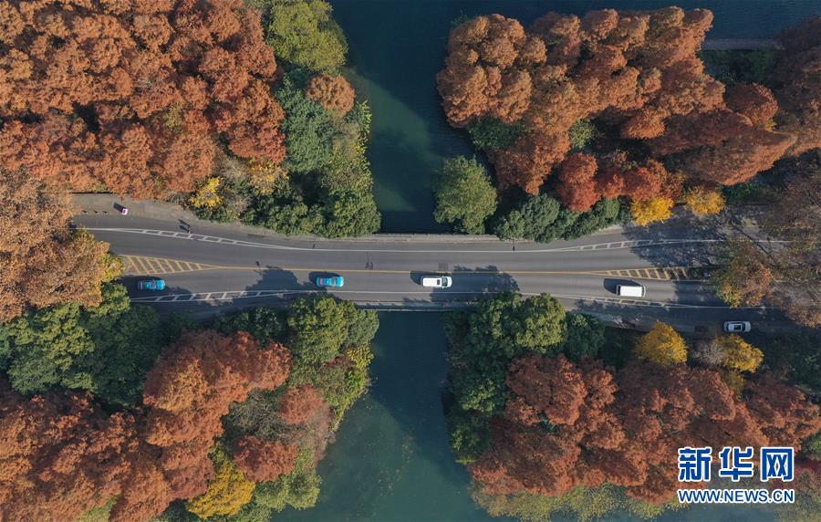 杭州西湖景區(qū)楊公堤附近的景色(2019年12月13日攝,無人機照片)。新華社記者黃宗治攝。